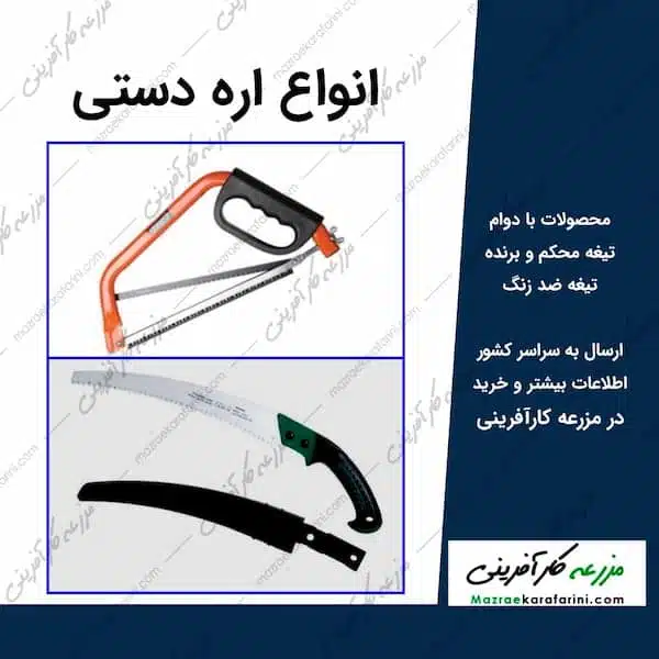 بعنوان یک مصرف کننده آگاه و کاردان باید به هنگام خرید اره های دستی با یک کارشناس یا فروشنده ابزارآلات کشاورزی مشورت تا بر اساس نوع کاربرد بهترین نوع اره به شما معرفی شود.