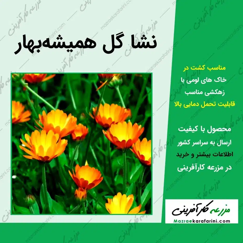 گل همیشه بهار با نام علمی alendula officinalis یا Calendula persica علاوه بر زیبایی ظاهری خود خصوصا در زمان گلدهی دارای خواص دارویی فراوانی است. کشت نشا گل همیشه بهار بسیار آسان است و براحتی میتوانید آن را در گلدان یا باغچه منزل خود پرورش دهید. برای کشت گل همیشهبهار میتوان بذر آن را کشت کرد و یا نشا کشت شده آن را خریداری و پرورش داد.